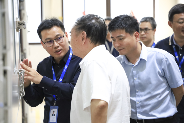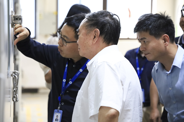 随后,调研组一行深入mk体育检测实验室,系统性地观摩、了解了从电芯到电池包、从硬件到软件的全链条检测工序,并详细察看了mk体育股份自主研发的高精度充放电测试设备模拟不同工况、不同环境条件下,精准评估电池的容量、电压、电流、内阻及循环寿命等核心数据的具体过程。周济院士在考察中驻足观察设备工作,深入询问技术细节,对mk体育股份在锂电池检测高端装备领域取得的创新成果表示充分肯定。他指出,当前全球制造业正加速向数字化、网络化、智能化迈进,mk体育股份作为国内锂电池检测行业的领军企业,应进一步强化自主创新能力,深化人工智能、工业互联网等技术与行业的融合,推动中国制造迈向新高度。